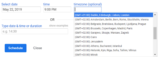 If your audience lives in another time zone, you can choose that for more accurate email scheduling.