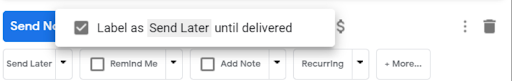 To send emails to this folder, check the “Label as Send Later until delivered” box, as shown below.