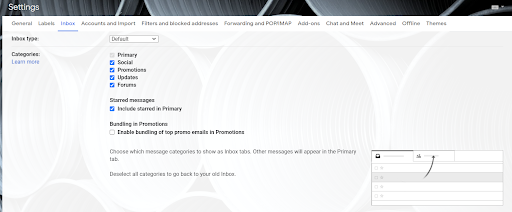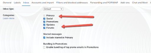 Step 7. Click the checkboxes of the categories that you want to include. You can also choose to have starred messages in your Primary category and bundle top promo emails.