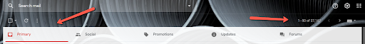 There are several categories in gmail. Different categories are separated by tabs like Updates, Forums, Social, and Promotions.