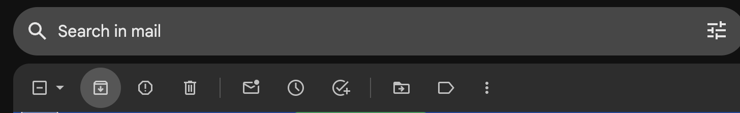 - Click on “Archive” (the file-like icon) on the taskbar at the top of your inbox.