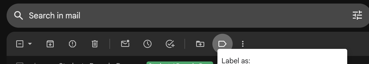 To apply your new label to an email, select the email and then click on the label icon that appears under the search bar.