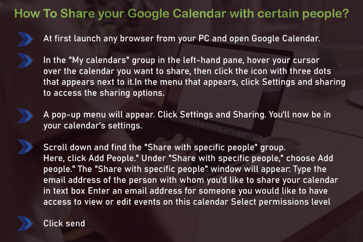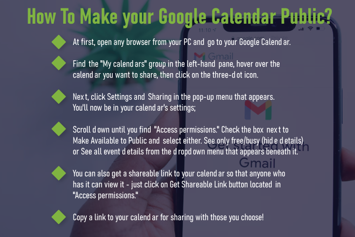 If you are looking to arrange a meeting, it can be difficult to find the right time for both of your schedules. Calendar sharing is a great option. Google Calendar lets you share your calendar with other people so that they can see when you are available.