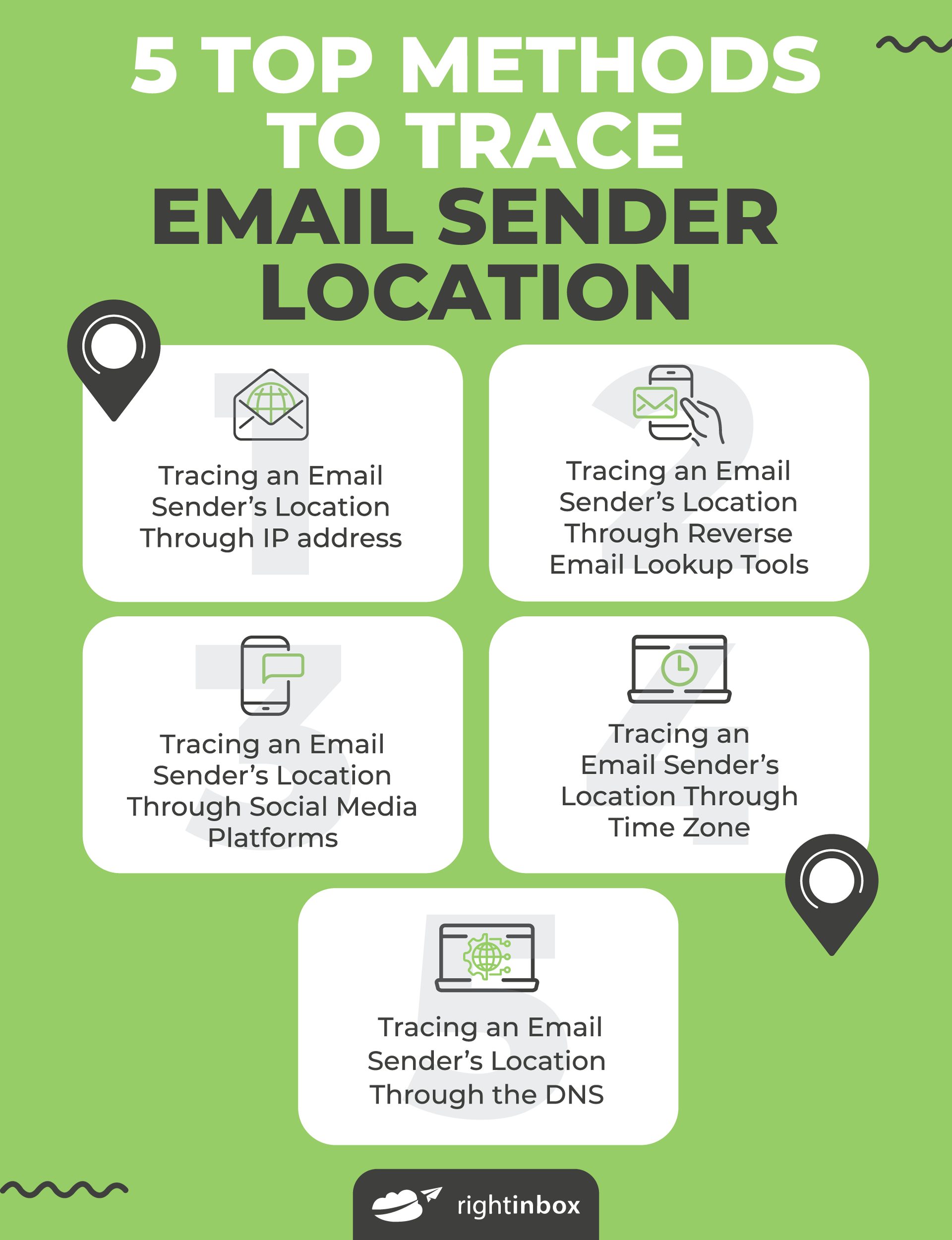There are five methods by which you can trace an email sender’s location: through their IP address, via a reverse lookup tool, by searching on social media platforms, by examining the sender’s time zone, and by using a DNS database.