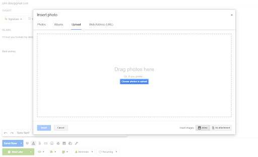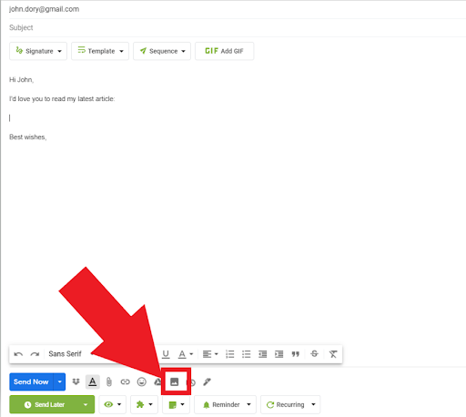 Step 3. Click on the Insert photo icon at the bottom of the email (or drag and drop an image from your device).