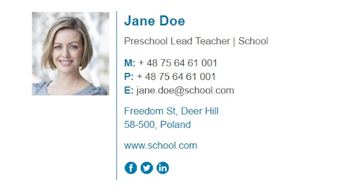 Since you are representing your school as a teacher, adding the school’s logo to your signature gives it a touch of professionalism and credibility.